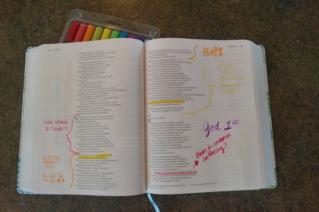 There are a ton of different journaling/art Bibles out there. I found mine on Amazon – it’s actually a teen edition! I love to read and being creative, win-win! My favorite markers so far have been the Farber Castelle dual tip. I’d love to do more with stickering and drawing; however, the main goal was to keep it simple and fun so I would want to keep doing it.